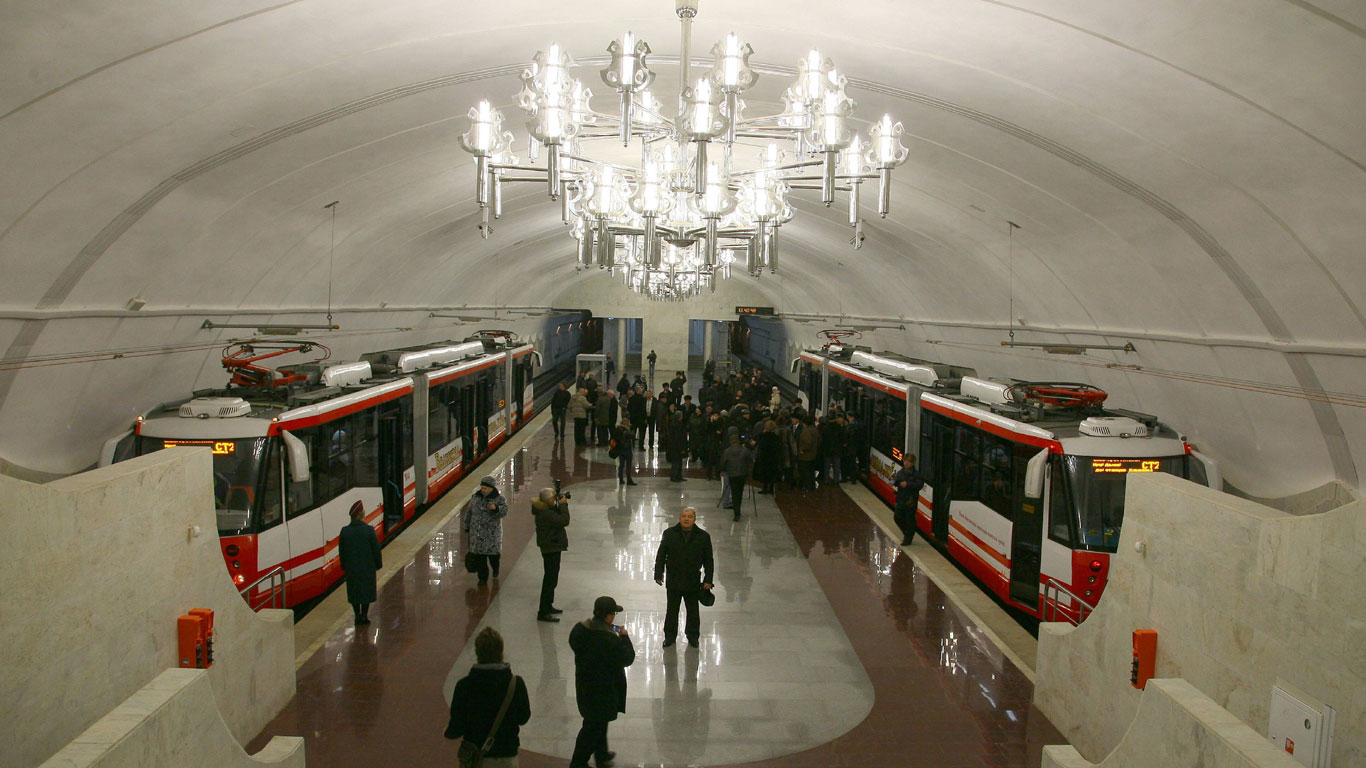 Auch in Wolgograd lassen Kronleuchter den Bahnsteig glamouröser erscheinen.