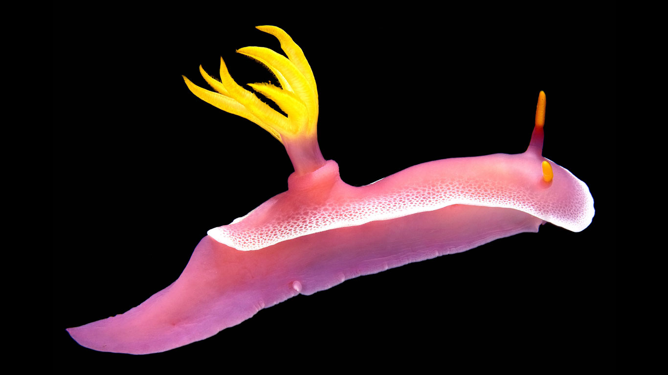 Auf den ersten Blick muss man sich fragen, ob man es hier mit einem Drachen aus einer Mittelalter-Sage, einem Pokémon oder einer Meeresschnecke zu tun hat. So verrückt die Blaue Ozeanschnecke auch aussehen mag, sie existiert tatsächlich – und zwar in vielen warmen und gemäßigten Meeren. Zierliche drei bis acht Zentimeter wird der optische Exzentriker groß. Ihre Flugdrachen-ähnliche Form verleiht ihr Auftrieb, damit sie ihre Beute – Segel- und Staatsquallen – erreichen kann.